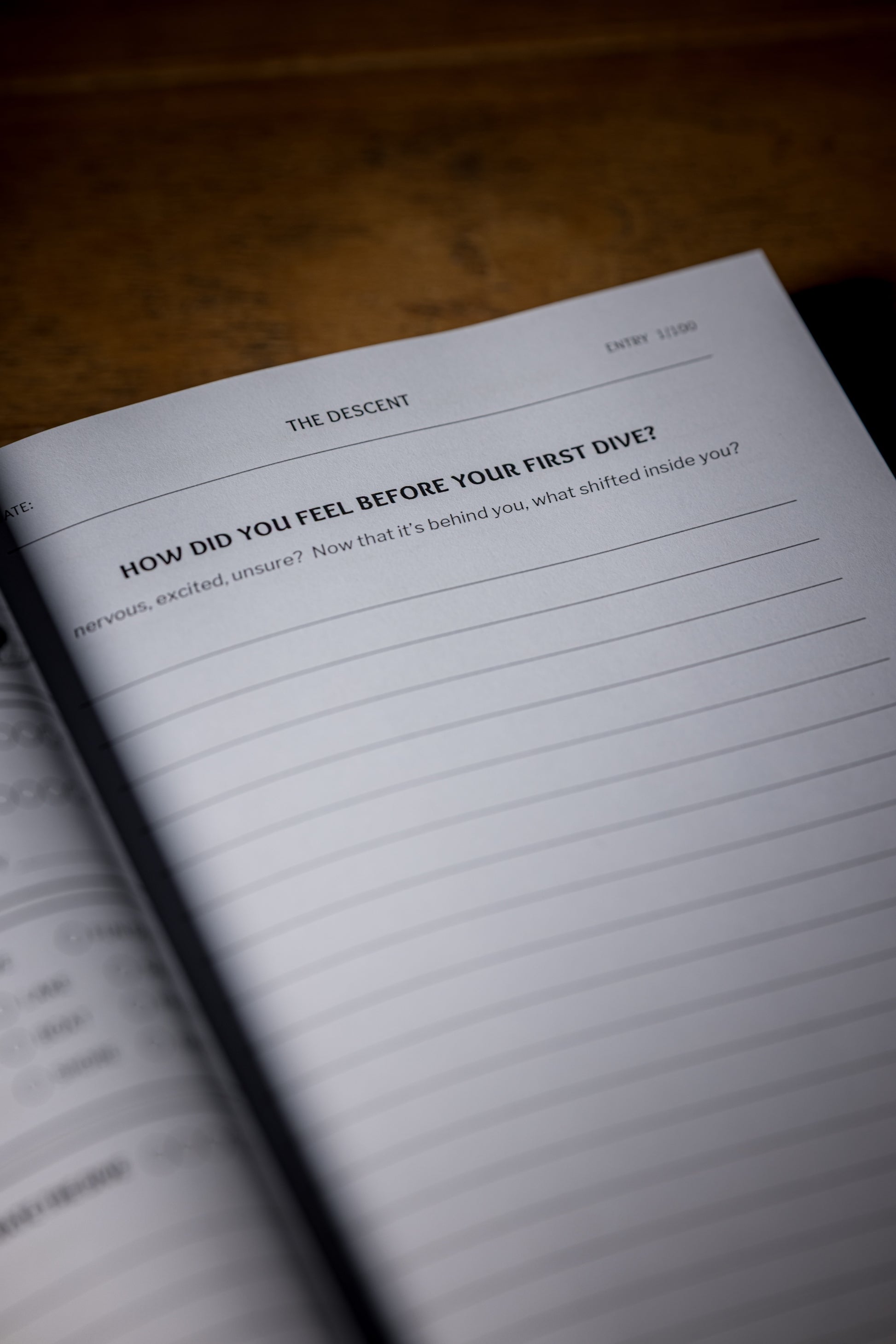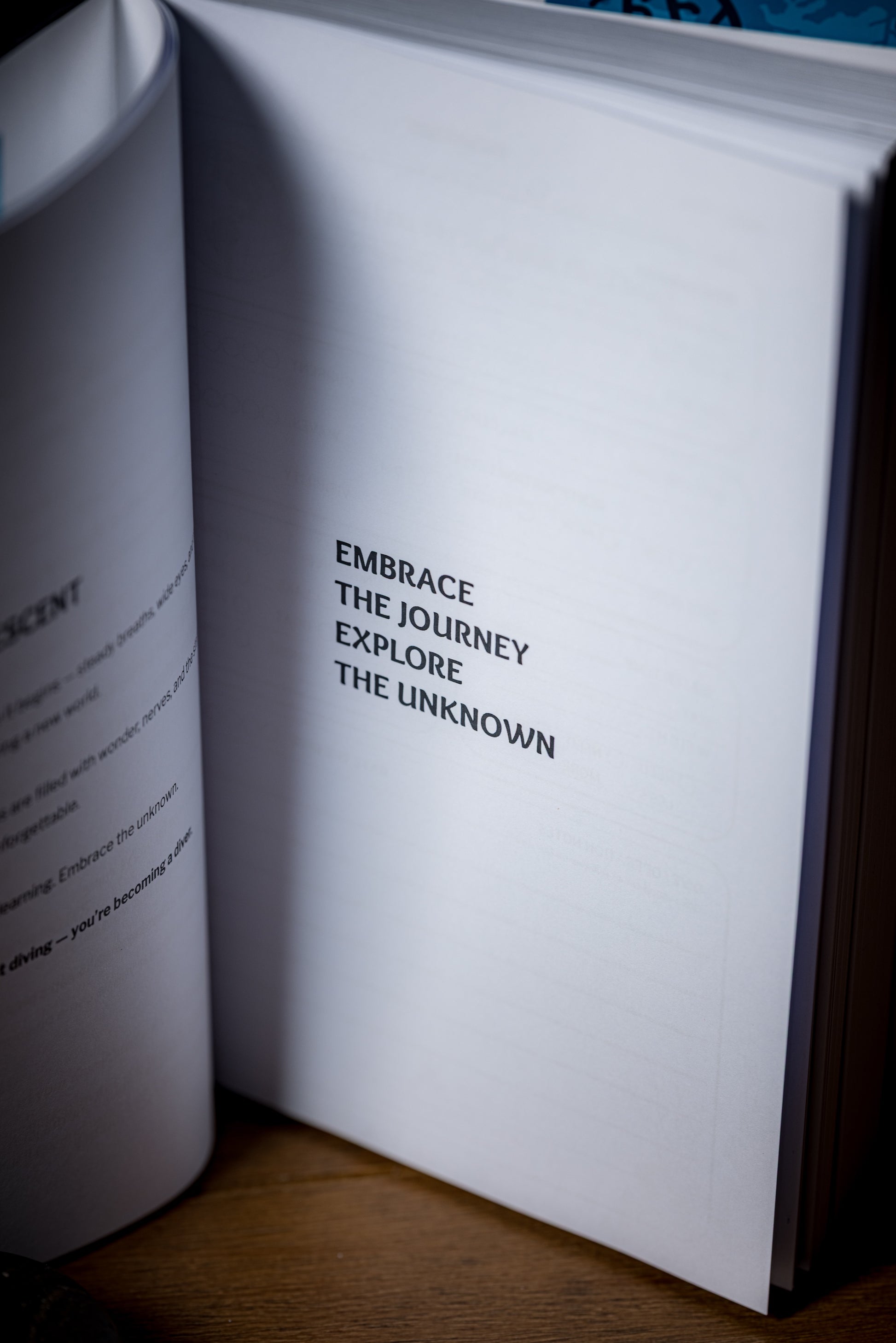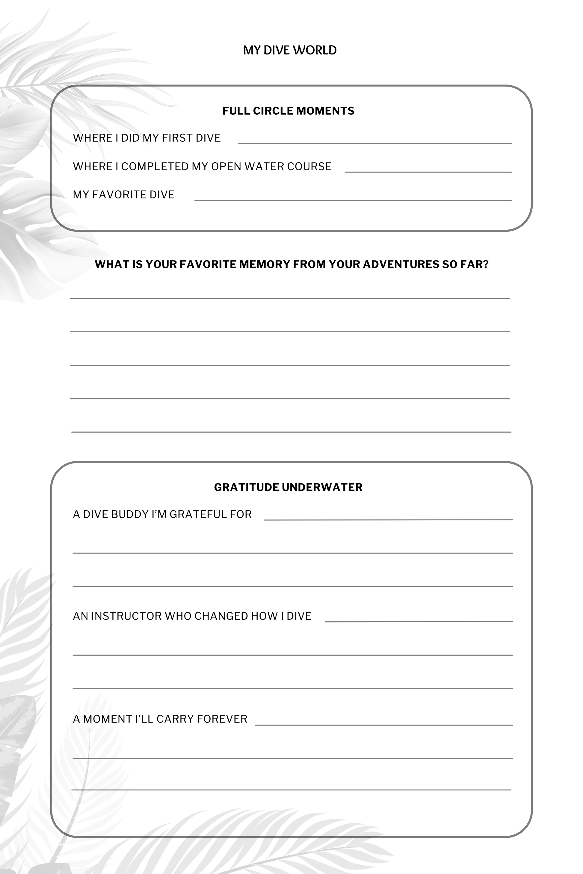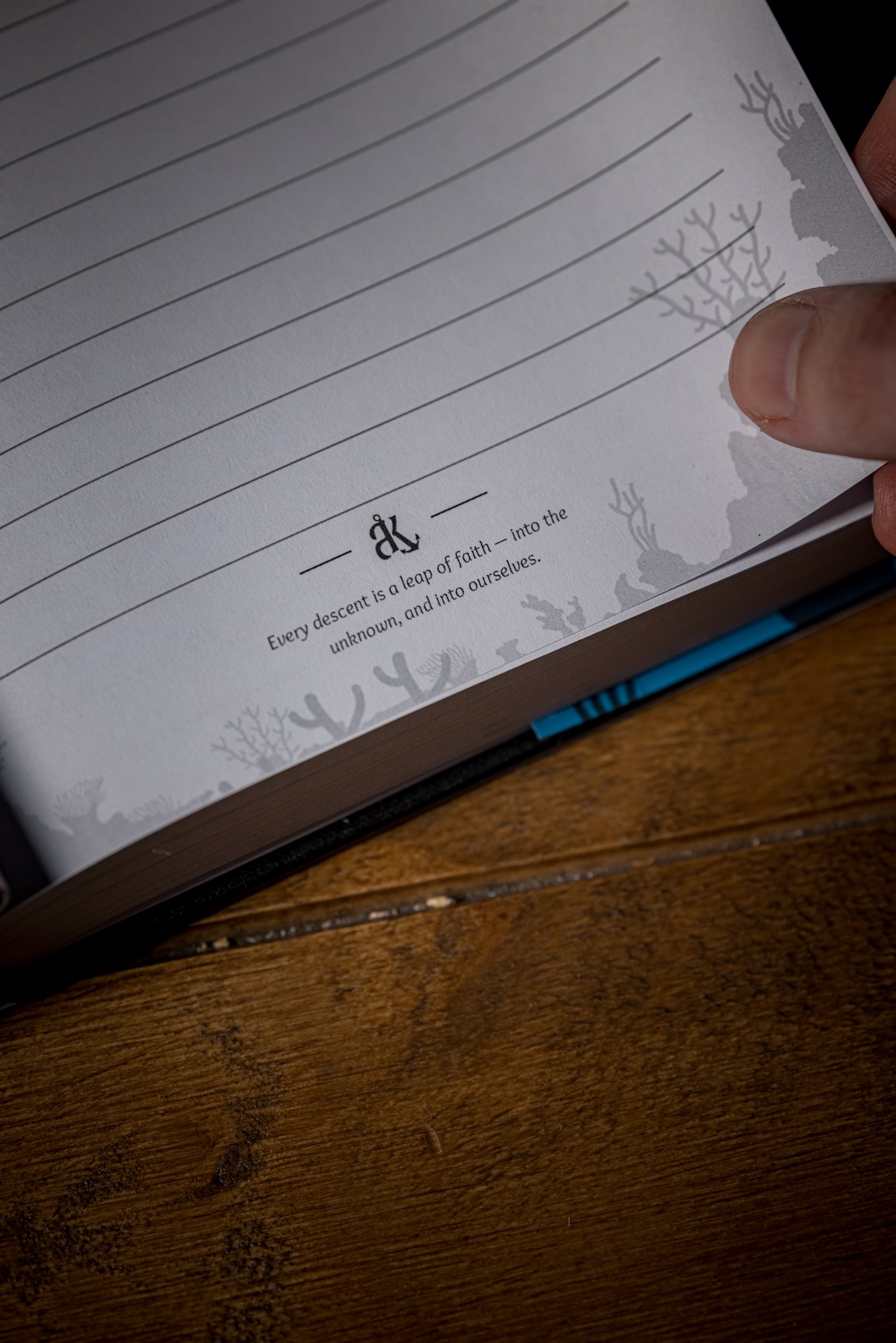 Your diving journey mirrors the shape of a dive, and this journal follows that same arc—divided into three symbolic chapters: